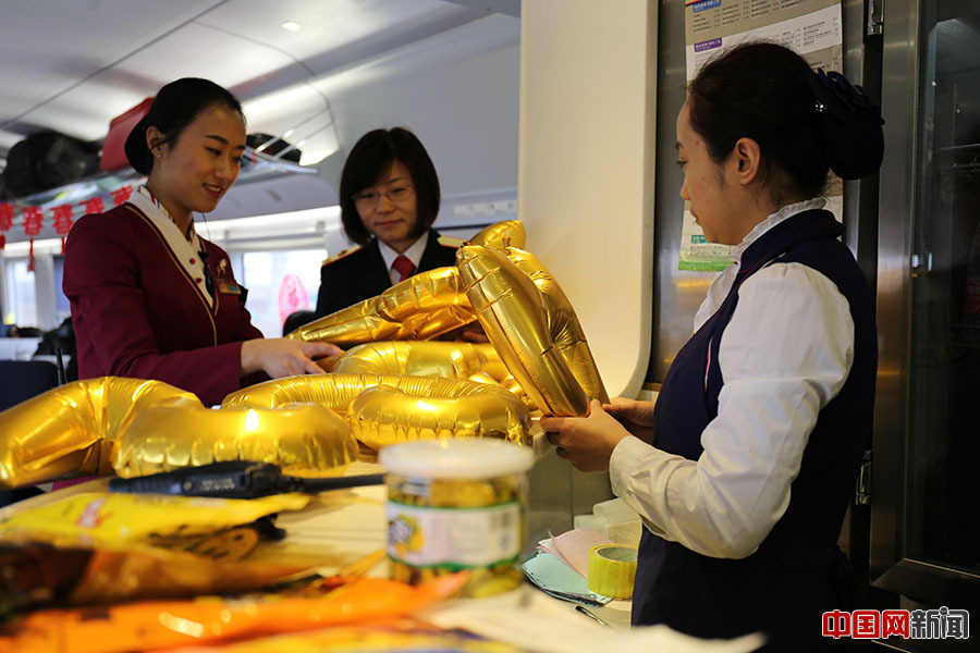 列车长在准备布置餐车,与乘客共迎新春。中国网 王梦泽 摄
