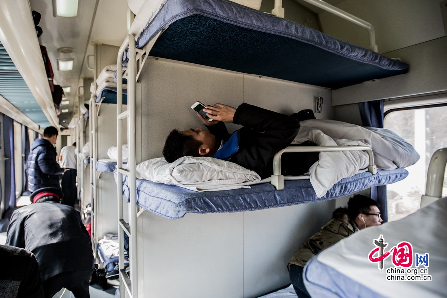 在卧铺的乘客相比硬座乘客他们的旅途会舒适很多。中国网记者郑亮摄影