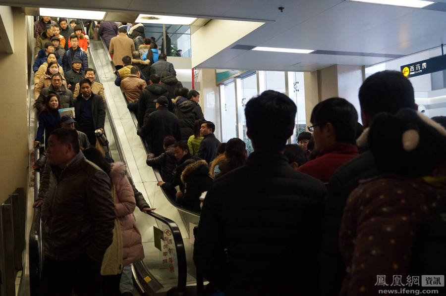 谈及原因,专家分析,这主要是因为春节后,老病号回归、新病号加入等各种因素共同叠加的结果。现场临近中午,门诊挂号处依然人山人海患者:有人一大早驱车几百公里,来看病;有人趁着医生周一坐诊,来复查。照片中,门诊大厅里到处是人,他们拥挤在一起,一点点向前挪动,场景堪比春运。图中两部履带电梯上,上下的患者和家属挤得满满当当。