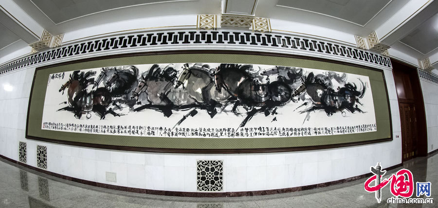位于人民大会堂二楼的《万马牧图》中国网郑亮摄影