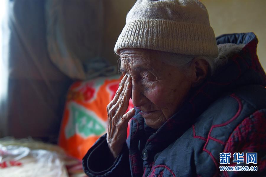郝菊香老人在回忆往事(3月9日摄)。现年94岁的郝菊香老人,家住山西省武乡县故城镇权店村。1939年4月的一天,17岁的郝菊香在家中被日军抓走强征为慰安妇,被日军凌辱了一个多月后,家里凑够了大洋才把她赎回来。新华社记者詹彦 摄