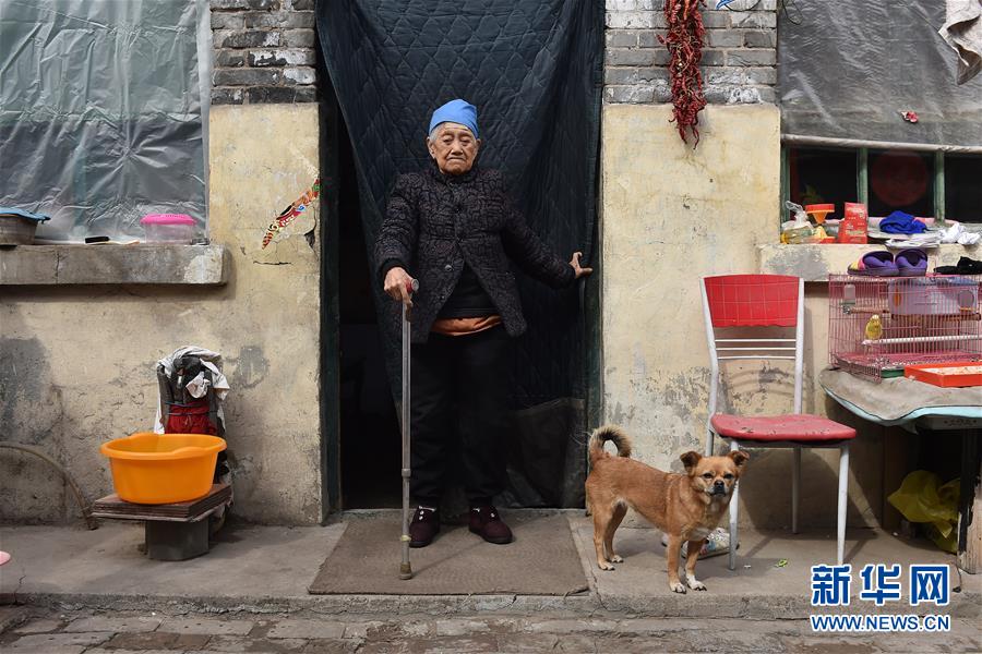刘改连老人在家门口(3月4日摄)。现年95岁的刘改连老人,家住山西省阳曲县黄寨镇。1943年12月,22岁的刘改连被扫荡的日军抓到据点蹂躏,后来家里付了大洋才把她赎回来。新华社记者詹彦 摄