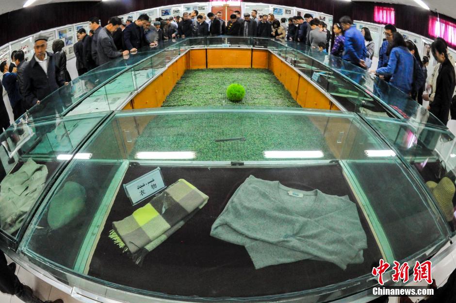 据介绍,王蔚1951年从西北农学院毕业后,服从分配来到新疆工作从事水利工作。1958年调往和田,自此揭开了王蔚兴修水利造福和田民众的序幕,直至生命的最后一刻,王蔚仍不忘乌鲁瓦提水库的建设进度。1991年4月27日,王蔚身患绝症治疗无效与世长辞。王蔚在和田工作的30多年间,主持修建了58座半水库、24座永久性渠首、2万多公里的水利渠道,使和田绝大多数农田成为稳产高产田,造福和田数百万民众,被当地维吾尔族乡亲喻为“水神”。图为参加祭扫活动的民众参观王蔚事迹陈列馆。刘新 摄