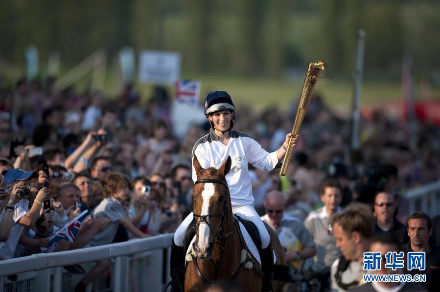 图为2012年5月23日,英国公主扎拉·菲利普斯在切尔滕纳姆赛马场参加伦敦奥运会火炬传递活动。 新华社发