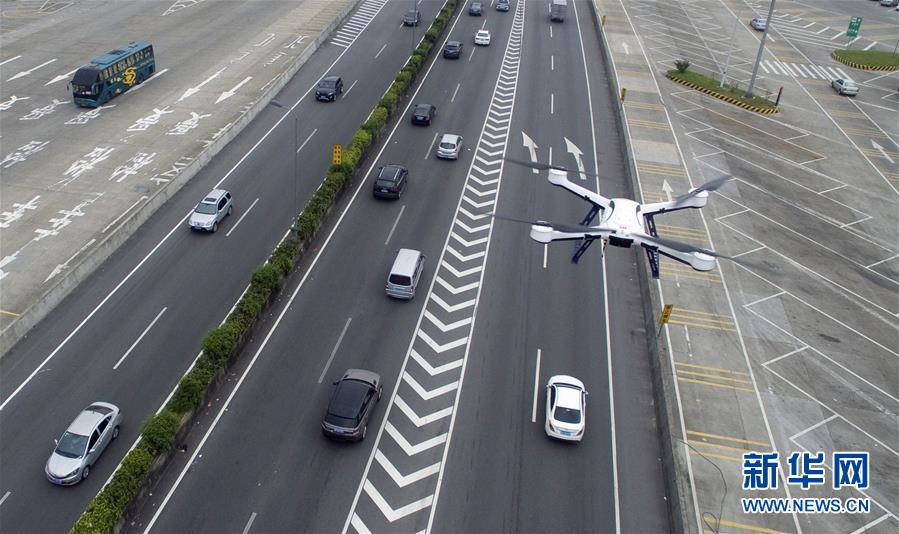 5月2日,警用无人机在高速公路上方巡逻。今年“五一”小长假期间,广州交警首次使用无人机巡逻,重点针对车辆违法占用应急车道行为进行抓拍。新华社记者 梁旭 摄