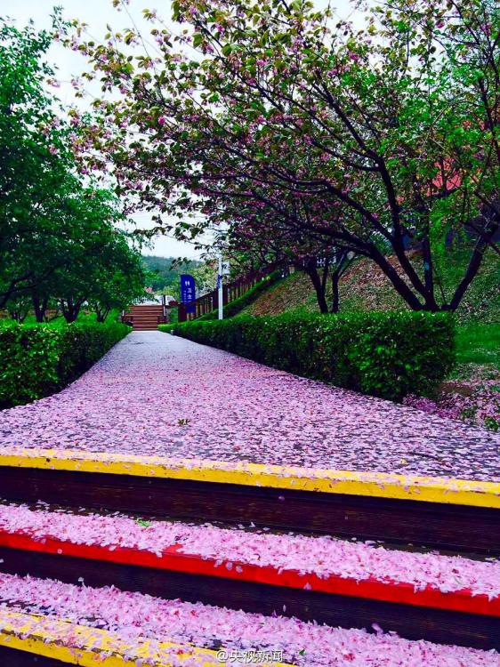 8级阵风袭击大连 风雨过后地面铺满樱花