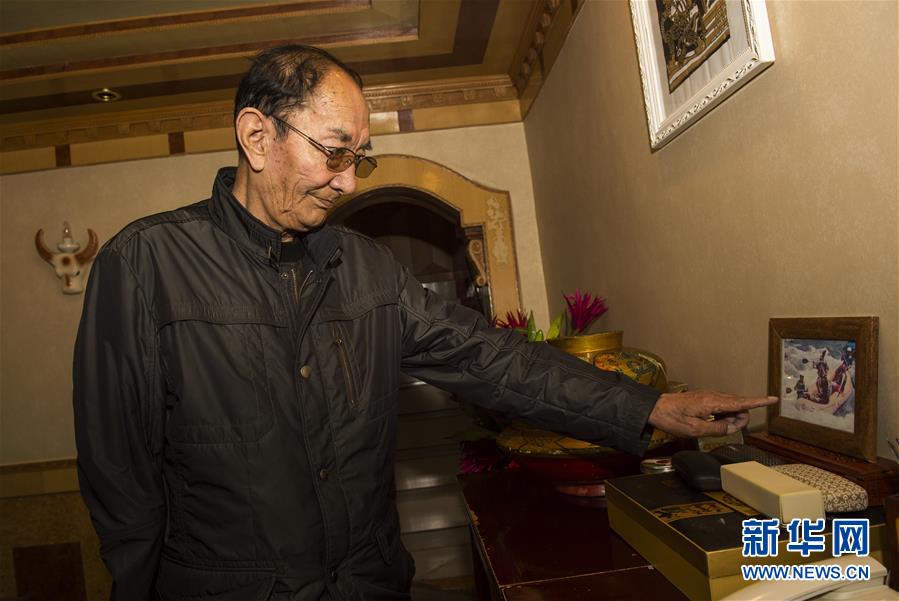 格桑罗布向记者展示儿子旦增朗杰在泰国旅游时的照片(5月17日摄)。 “轰、轰、轰……”60多年前,英国BSA(三枪)摩托车的马达声划过拉萨河边仲吉林卡树梢时,人们透过高高扬起的尘土,就会看见帅气俊朗的格桑罗布,他是“山南王”拉加里赤钦的四弟。新华社记者刘东君 摄