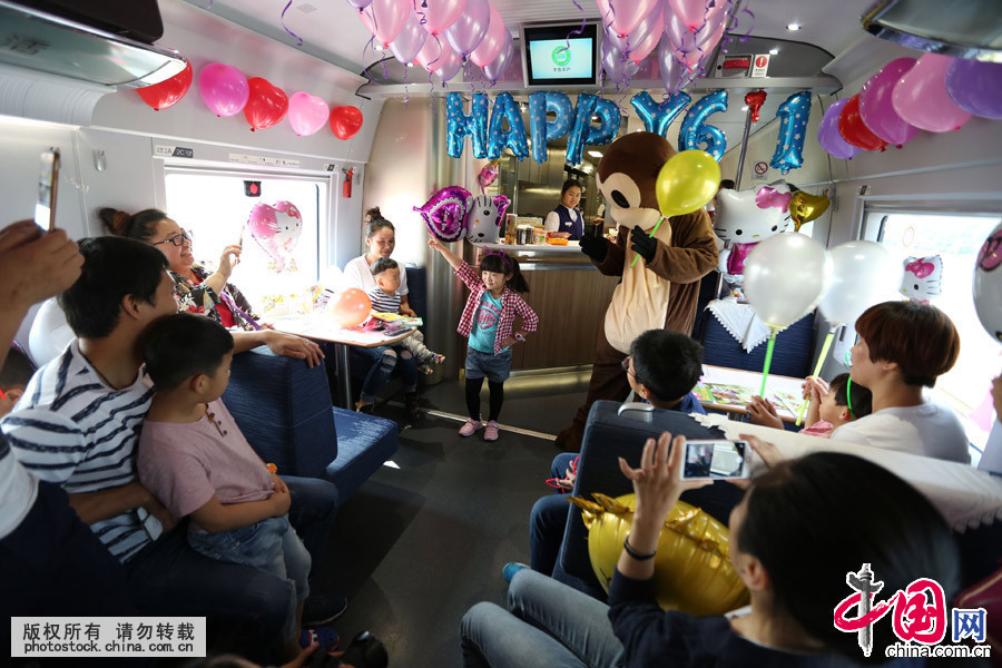 6月1日,小乘客随着“小苹果”的节奏动感起舞。中国网郑亮摄影