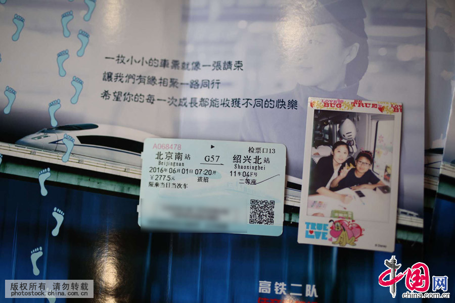 6月1日,列车组为乘坐高铁的小乘客拍摄拍立得照片留念。中国网郑亮摄影