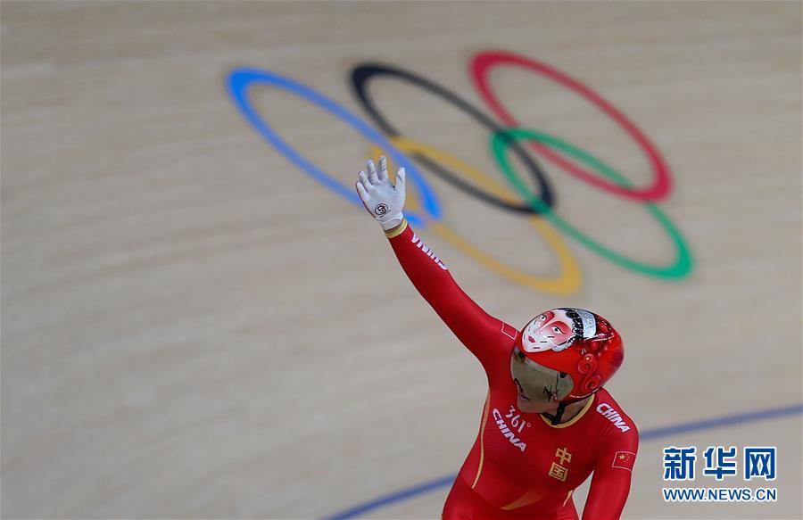 8月12日,中国队选手钟天使庆祝夺冠。当日,在2016年里约奥运会场地自行车女子团体竞速赛决赛中,由宫金杰和钟天使组成的中国队以56秒062的成绩夺冠。新华社记者曹灿摄