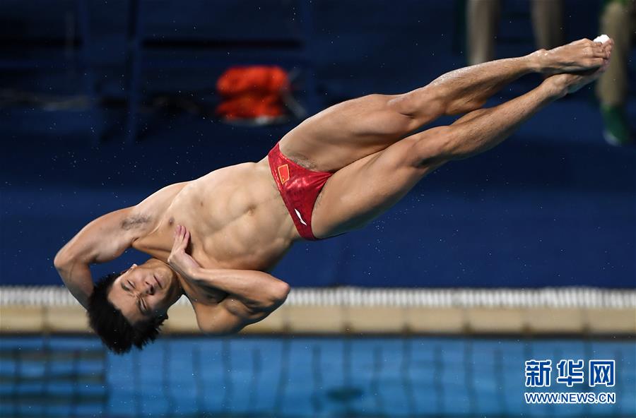 8月16日,曹缘在比赛中。当日,在2016年里约奥运会男子跳水三米板决赛中,中国选手曹缘以547.60分的总成绩夺冠。新华社记者韩瑜庆摄