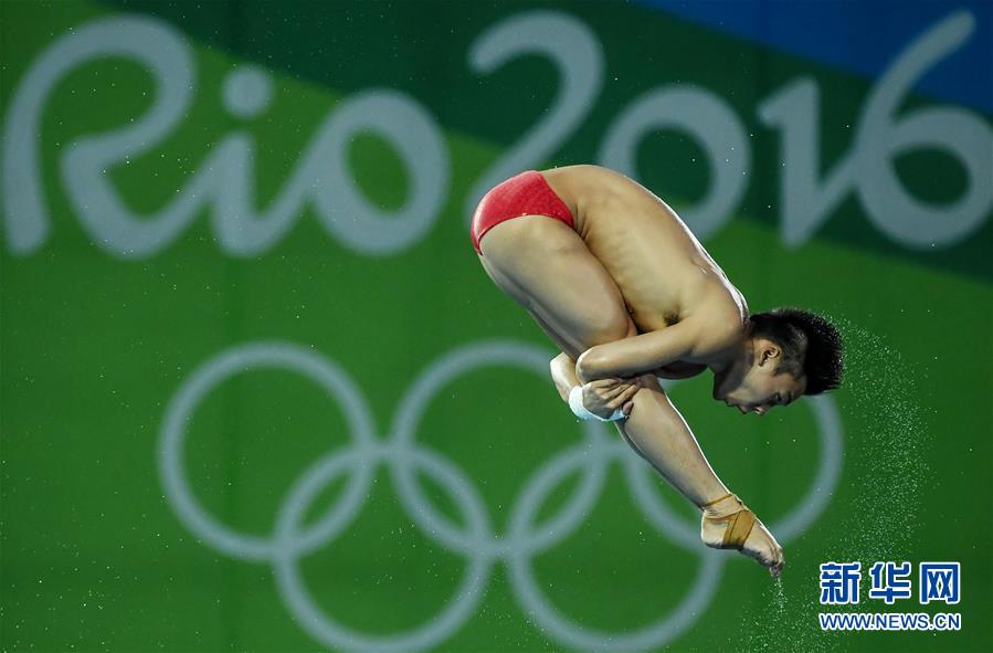 8月20日,陈艾森在比赛中。当日,在2016年里约奥运会跳水男子10米台决赛中,中国选手陈艾森以585.30分的总成绩夺得金牌。新华社记者王昊飞摄