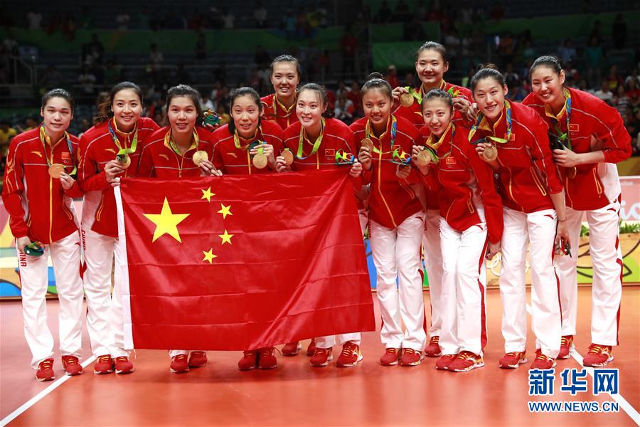 8月20日,中国女排队员在颁奖仪式后合影。当日,在2016年里约奥运会女子排球决赛中,中国队以3比1战胜塞尔维亚队,夺得冠军。新华社记者任正来摄