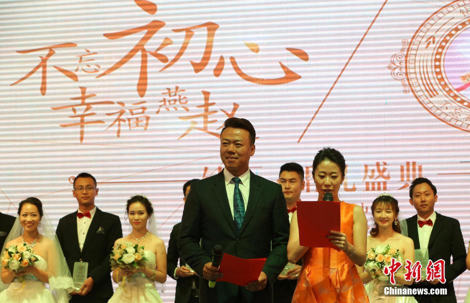冬奥花样滑冰冠军夫妇申雪、赵宏博见证了这20对“90后”新人完成婚礼。 中新社记者 翟羽佳 摄