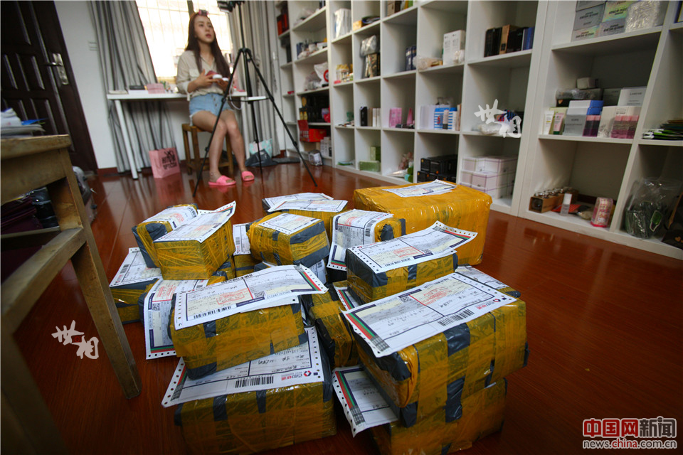 打包好一批货等待快递员来取件。