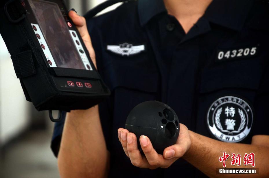 360度侦察球,可徒手抛掷到远距离有潜在危险的区域,并实时无线传输现场视频和音频到后台。 程景伟 摄