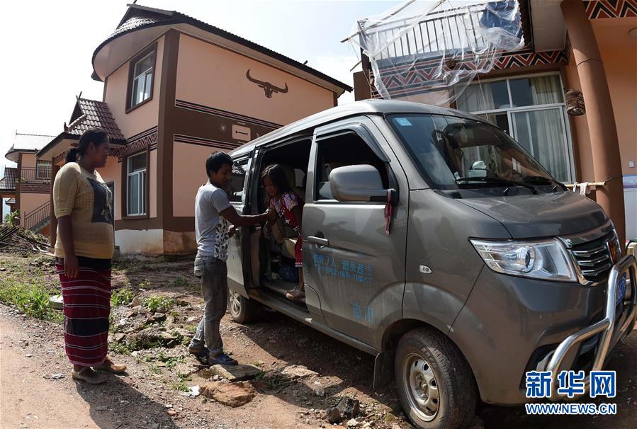 云南省普洱市西盟佤族自治县勐梭镇秧洛村博航八组村民岩嘎(中)、娜松(左)夫妇带女儿体验新买的汽车(9月22日摄)。新华社记者 蔺以光摄