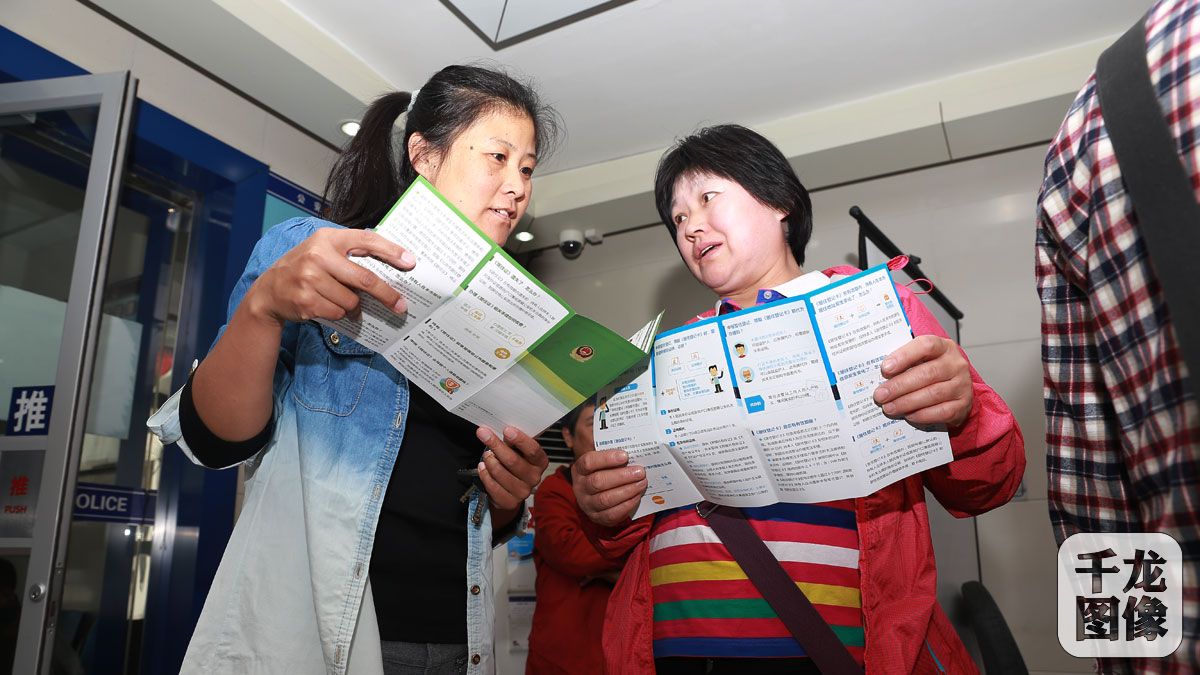 10月1日,两位来西城区厂桥派出所了解居申请居住证相关情况的市民互相交流。千龙网记者 鄂晓颖摄