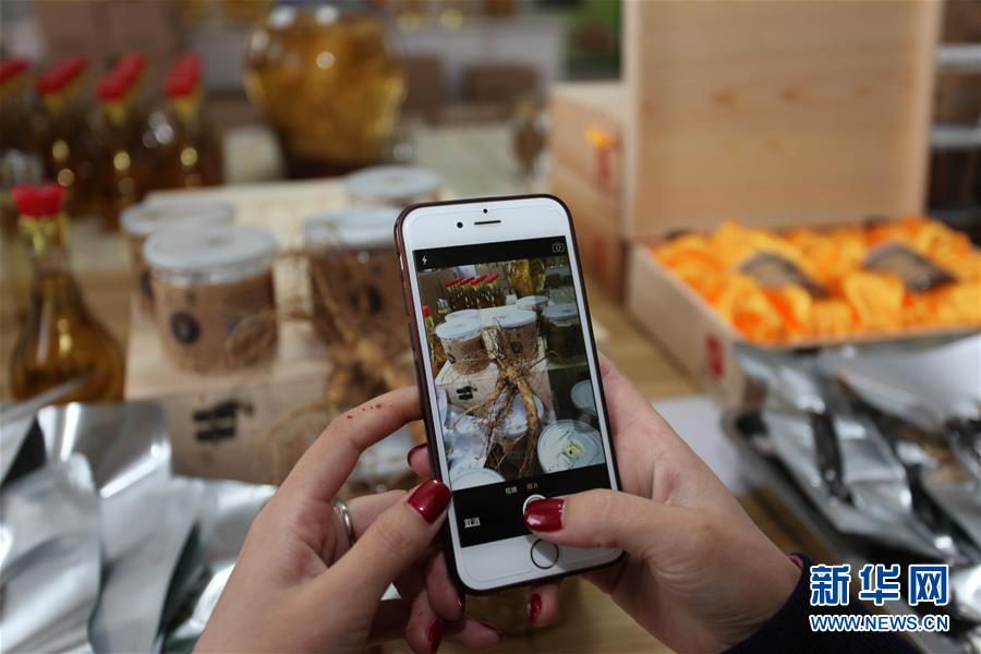 10月23日,山东文登大水泊镇的参农在拍摄西洋参产品,准备上网销售。眼下正是我国西洋参主产区山东省威海市文登区西洋参收获的季节,当地种植户、合作社忙着收获、加工西洋参,供应各地市场。近年来,文登西洋参种植户、合作社积极与网购和微信平台合作,借助电商快递物流把西洋参鲜参及各类参产品销售到国内外市场,实现参产品增值,参农增收。新华社发(陈宏青摄)