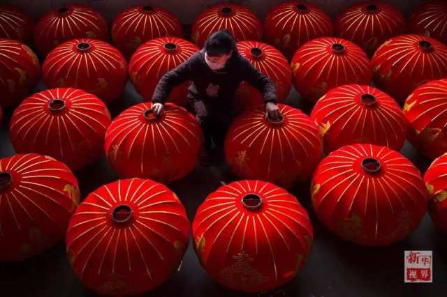 ↑在安徽合肥开明工艺宫灯制造有限公司内,一名工人在整理红灯笼半成品(1月11日摄)。新华社记者郭晨摄
