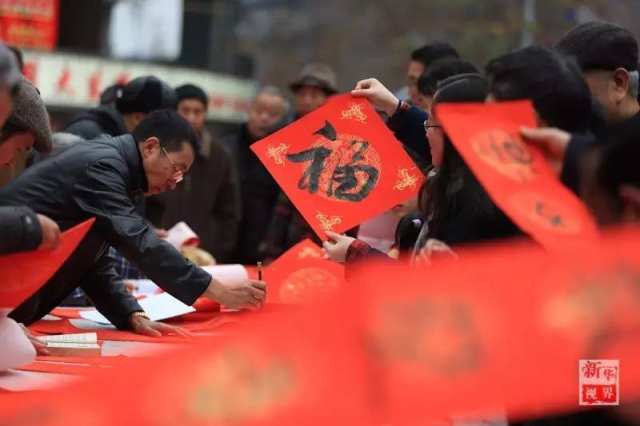 ↑书法志愿者为重庆市北碚区天生街道社区居民书写春联(1月14日摄)。 新华社发(秦廷富 摄)