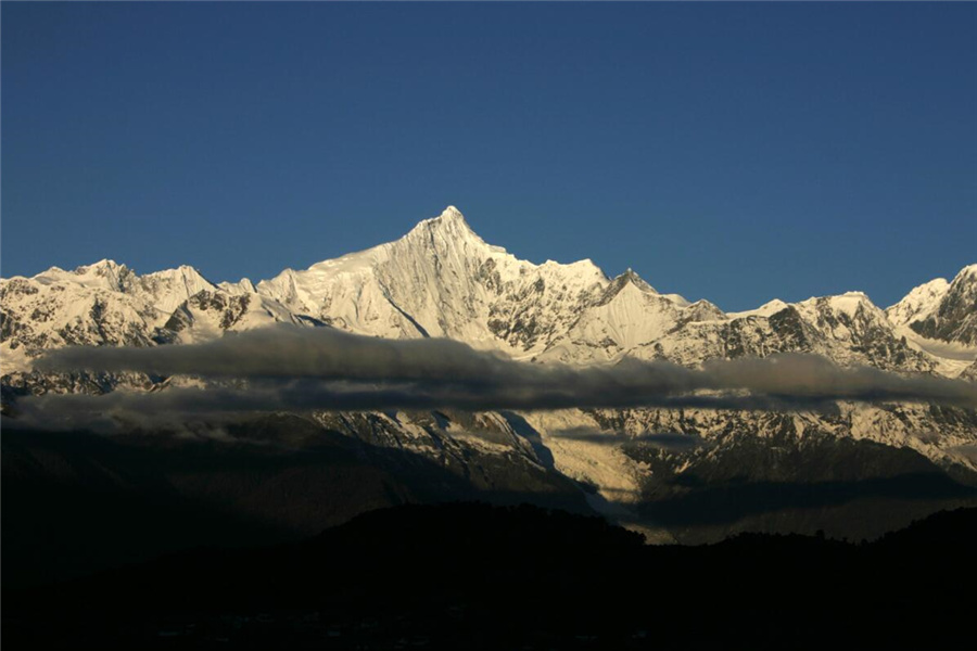 梅里雪山位于滇藏交界的云南省迪庆藏族自治州德钦县境内,是世界自然遗产“三江并流”的主要自然景观之一。主峰卡瓦格博峰海拔6740米,雪峰直指蓝天,碧水深切峡谷,素有“雪山之神”美称,是藏传佛教的朝觐圣地。(中共迪庆州委宣传部供图)