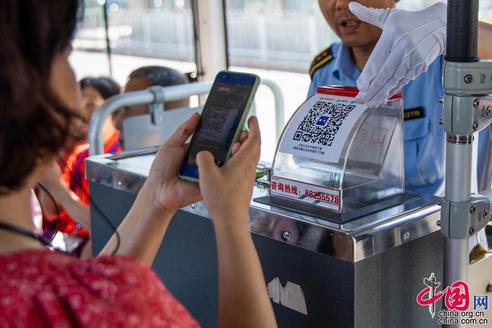 乘客扫码下载“北京公交”APP体验便捷的移动支付。中国网记者 郑亮摄