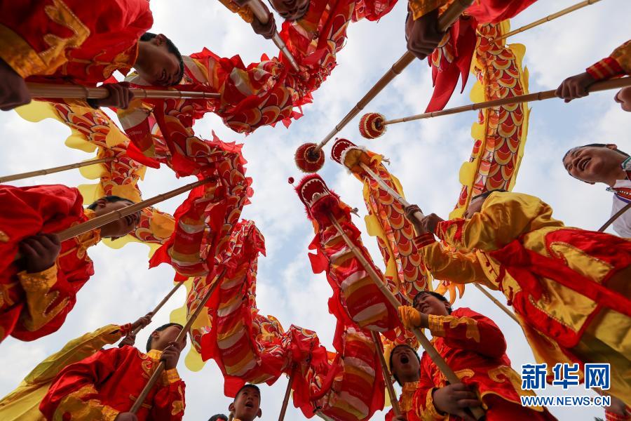 12月25日,在玉屏侗族自治县朱家场镇兴隆小学,学生们练习舞龙。新华社发(胡攀学 摄)
