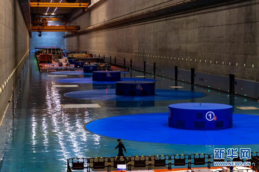 这是2020年12月31日晚拍摄的三峡左岸电站厂房。