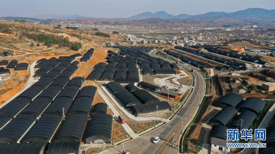 这是鲁甸易地扶贫搬迁安置区的食用菌种植基地(3月4日摄,无人机照片)。该基地有1000个食用菌大棚,让不适应厂房工作、想继续从事农业种植的搬迁群众有地可种,确保户户有产业就业支撑。新华社记者 刘大伟 摄