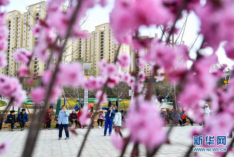 搬迁群众在鲁甸安置区卯家湾幸福广场上唱山歌(3月4日摄)。新华社记者 刘大伟 摄