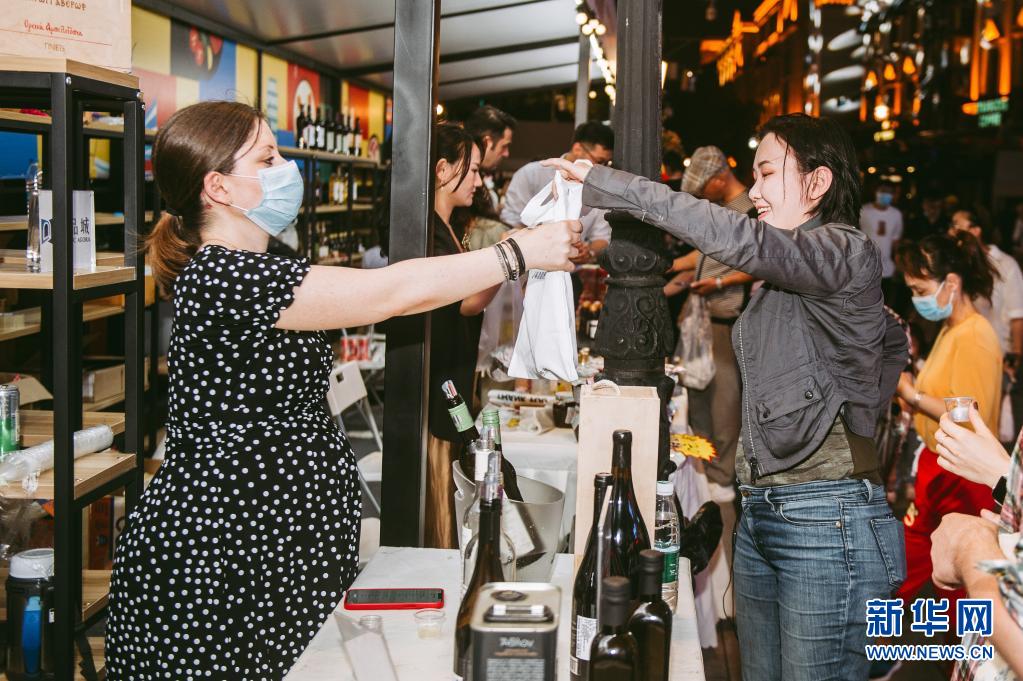 6月9日,在中东欧人文交流活动现场,顾客在埃莱妮(左一)的展位上购买商品。