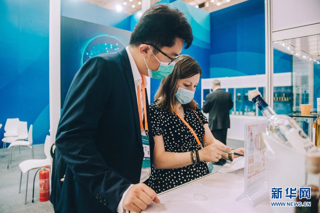 6月9日,埃莱妮(右)在博览会现场与中国员工一同核对展品数量。
