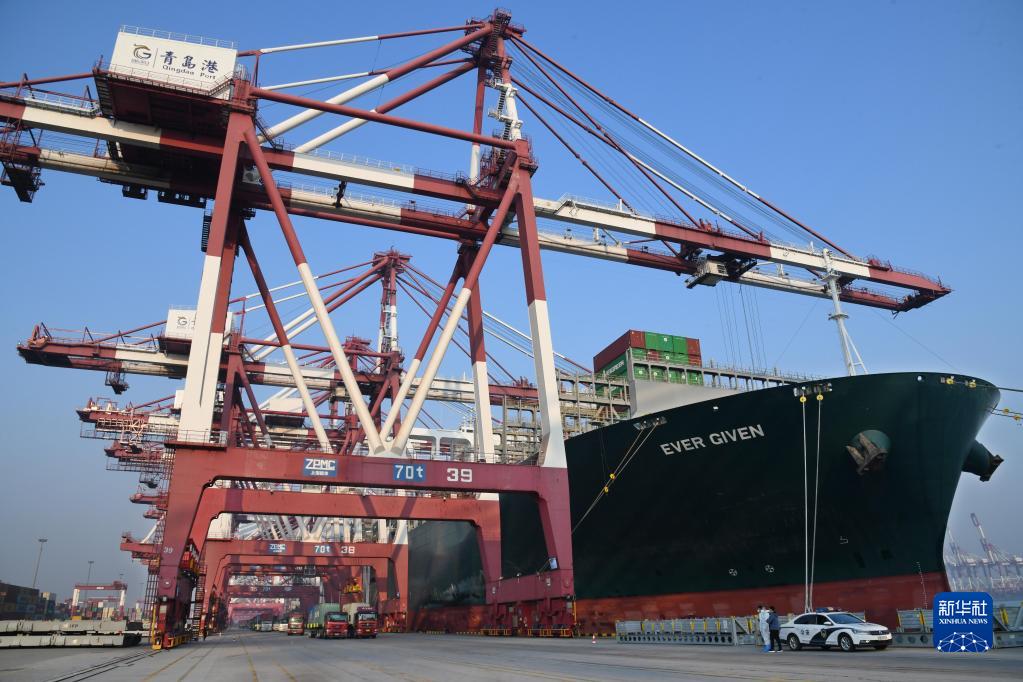 当日,曾在苏伊士运河搁浅造成堵塞的“长赐”号货轮在青岛完成维修后,开始在山东港口青岛港装载货物,这标志着该船正式恢复商业营运。随后“长赐”号还将在上海、宁波装货,然后前往马来西亚,开启其修复后的首次载货远航。