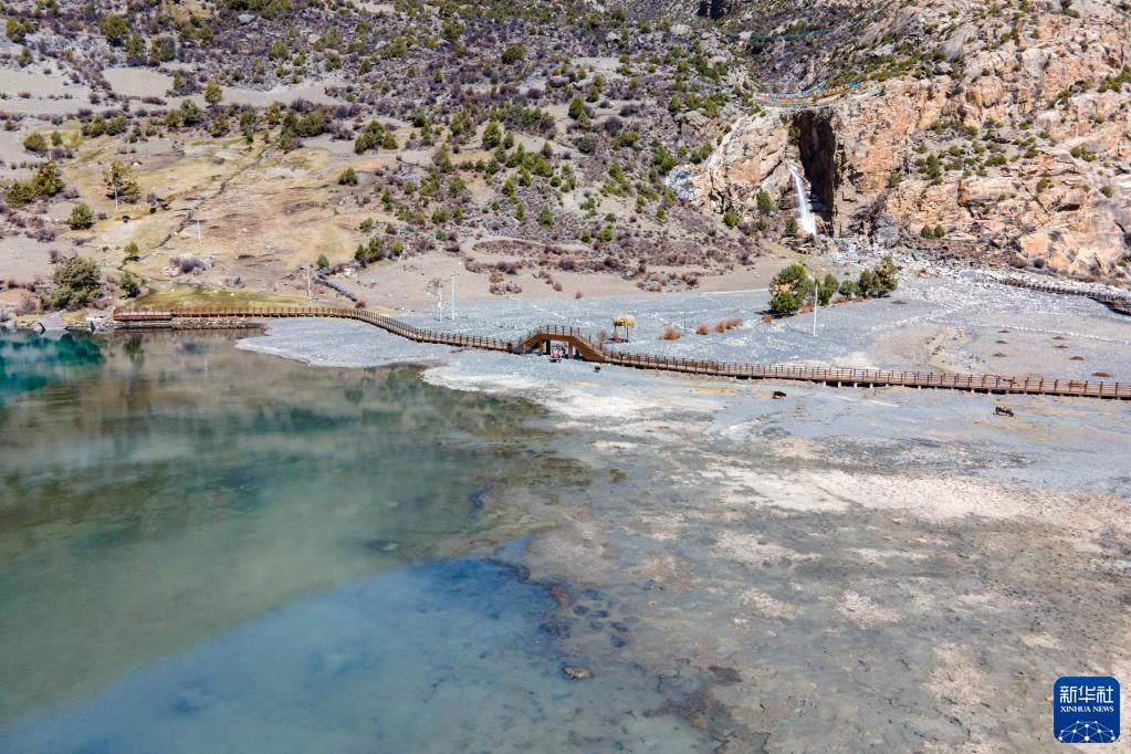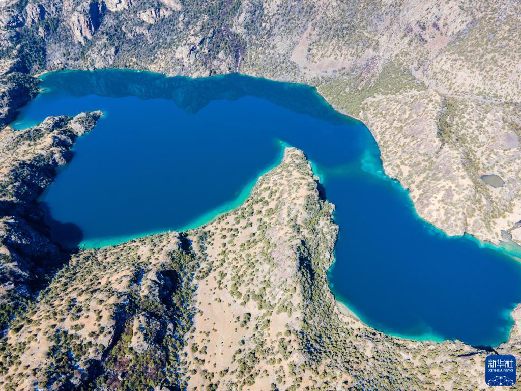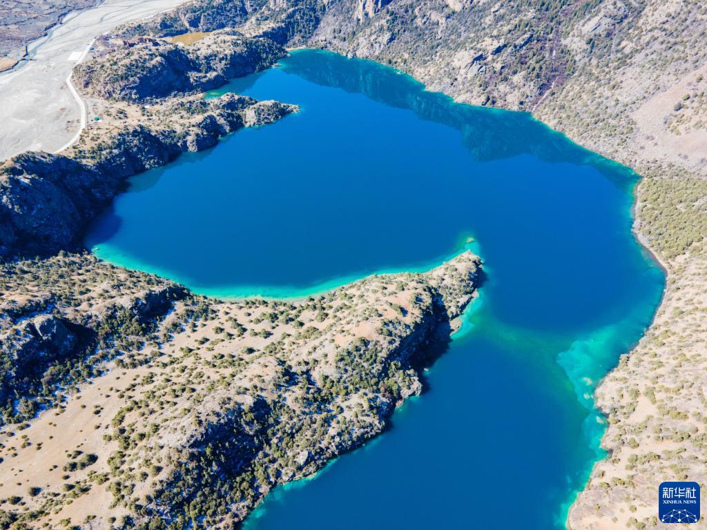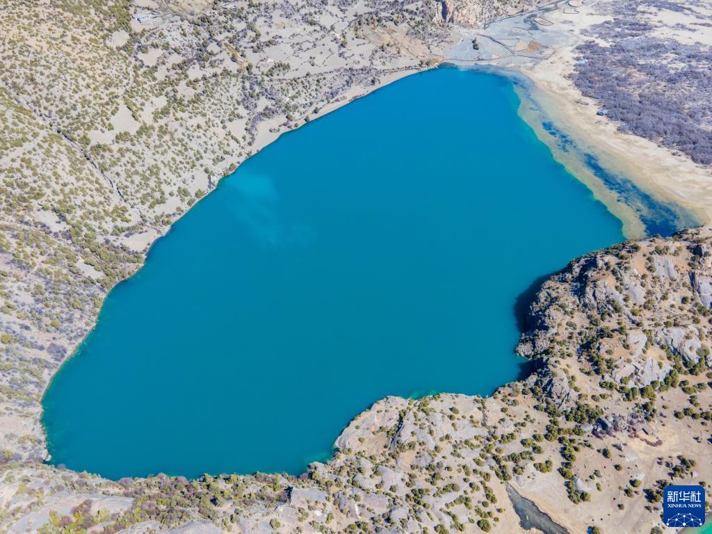 俯瞰黑湖,湖水更多呈现出明亮的蓝色(4月2日摄,无人机照片)。