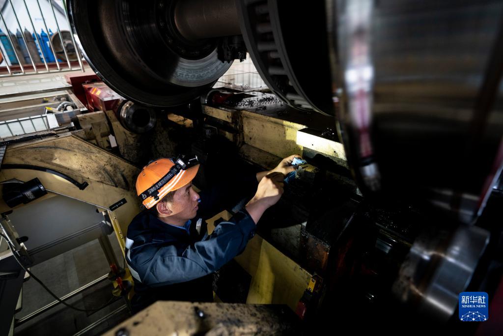 4月26日,吴志祥在擦拭镟修设备的刀片。新华社记者 陈欣波 摄