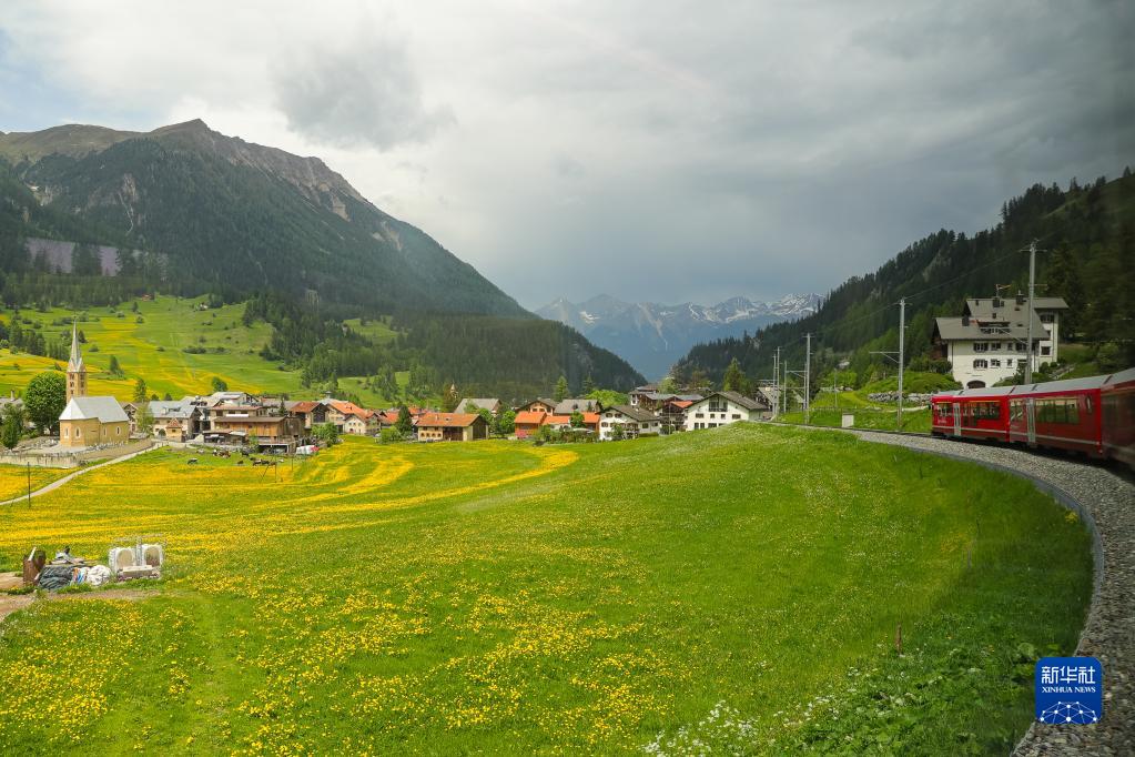 5月22日,火车行驶在瑞士阿尔布拉-贝尔尼纳铁路线上。新华社记者 郑焕松 摄