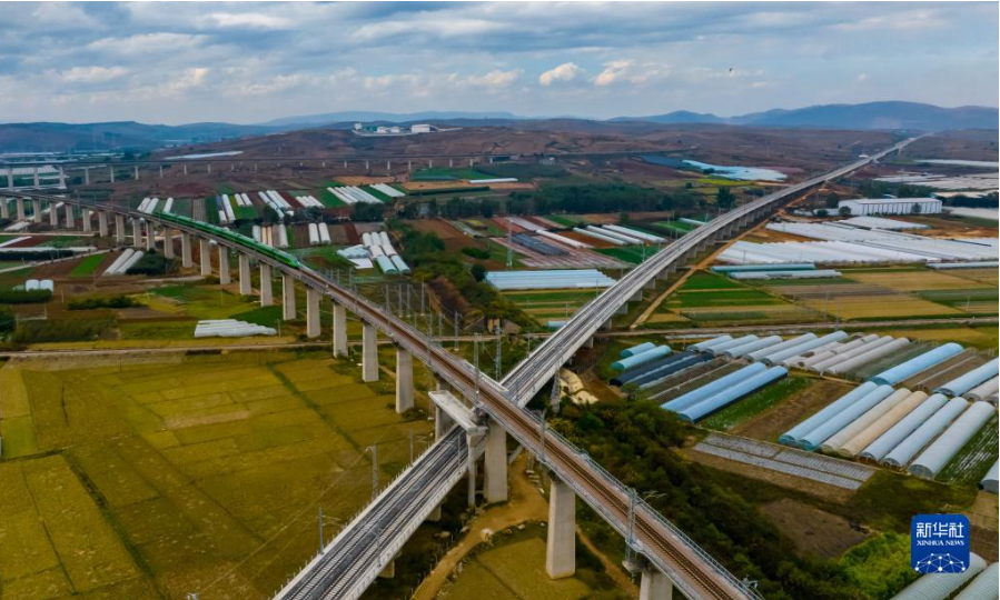 弥(勒)蒙(自)高铁位于云南省红河哈尼族彝族自治州境内,正线长约107公里,设计开行旅客列车时速目标值为250公里,目前工程建设进展顺利,沿线车站建设基本完成。