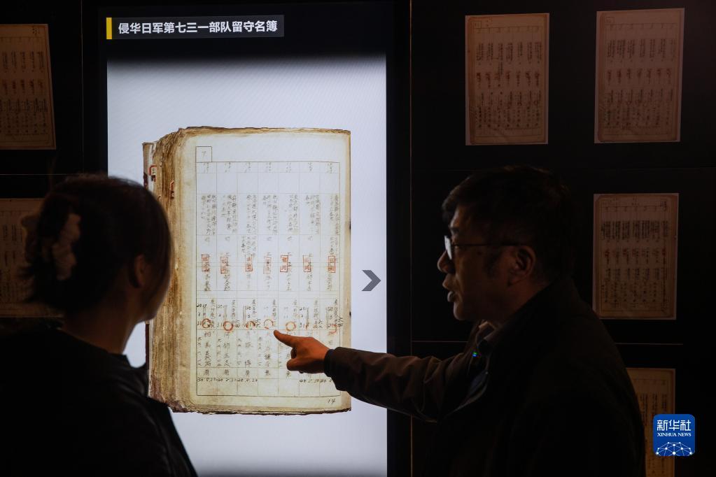 12月10日,在侵华日军第七三一部队罪证陈列馆,工作人员在介绍新展出的《关东军防疫给水部留守名簿》。