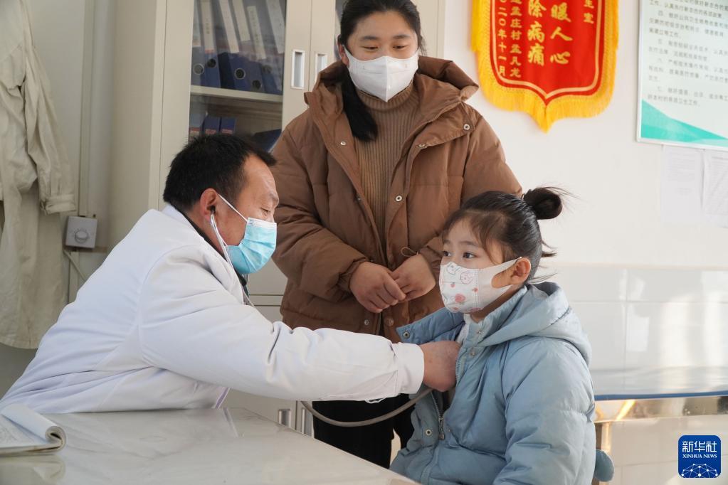 1月10日,在山东省郓城县郭屯镇邵集村卫生室,全科医生李仁帮为患者看病。