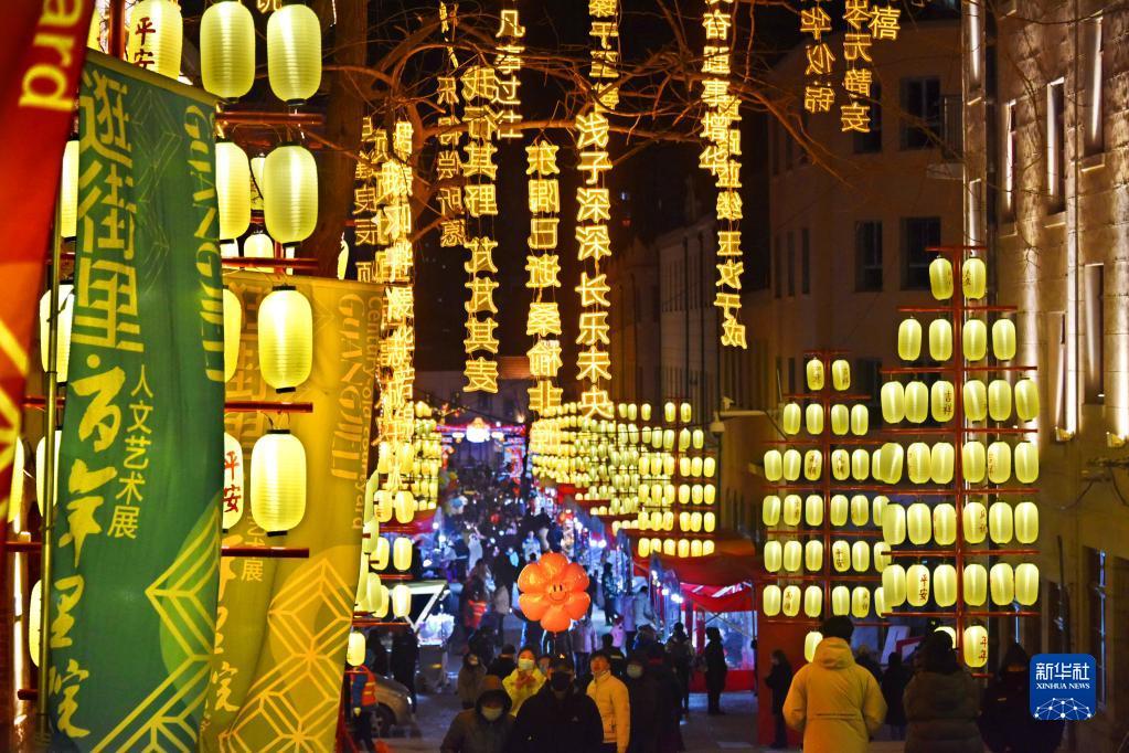 元宵节临近,青岛市市南区“逛街里”新春灯会上的璀璨花灯点亮了老城区的大街小巷,吸引人们前来赏灯。