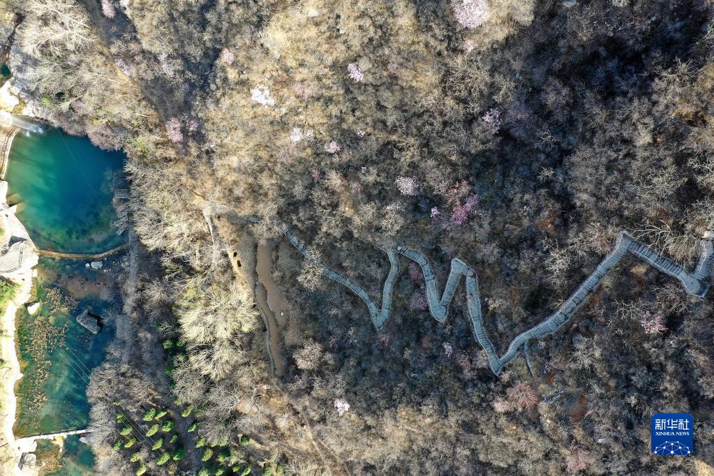 村民们走在修好的旅游步道上(2023年3月10日摄,无人机照片)。新华社记者 詹彦 摄