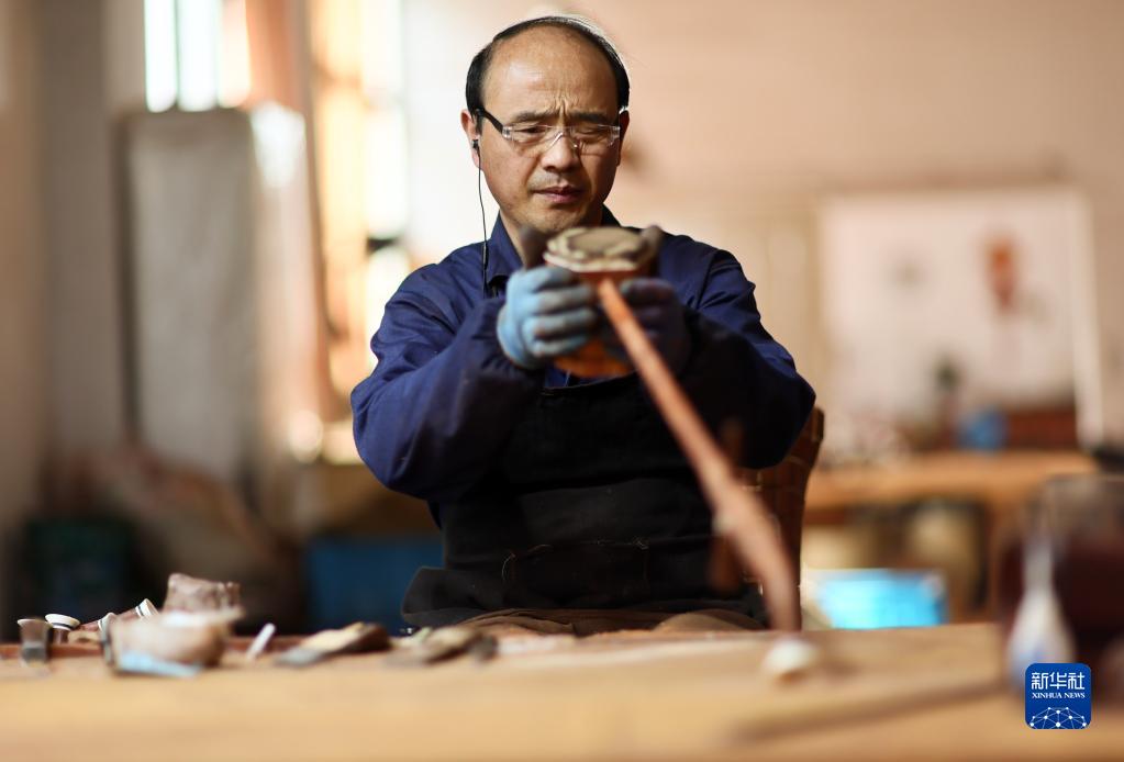 3月28日,在江苏无锡梅村街道二胡产业园,工人在组装二胡。