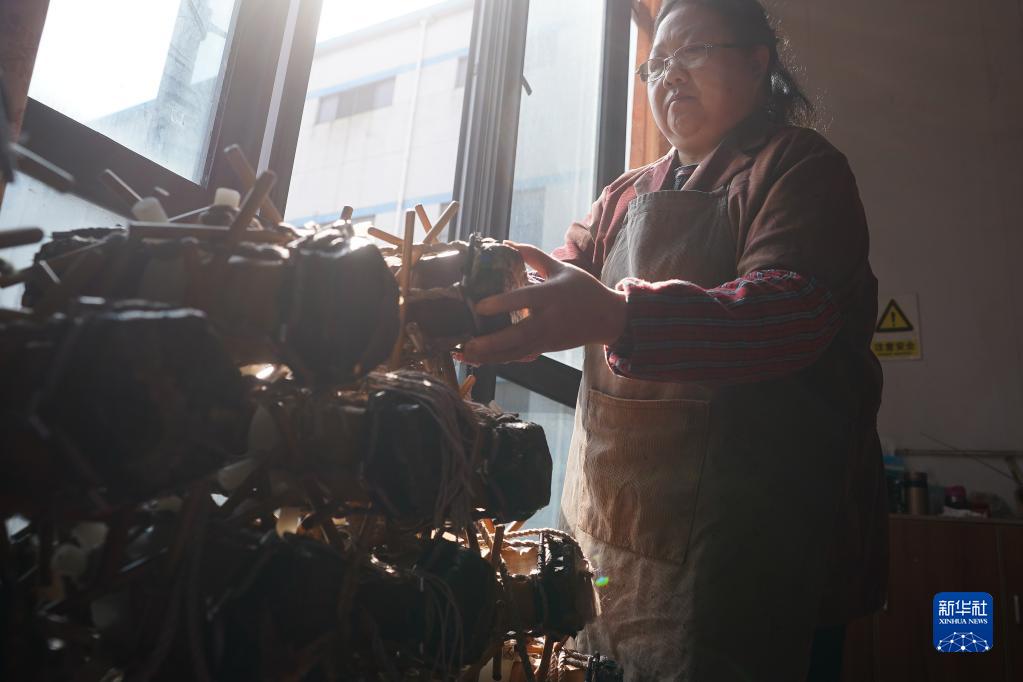 3月28日,在江苏无锡梅村街道二胡产业园古月琴坊车间,工人在忙碌。