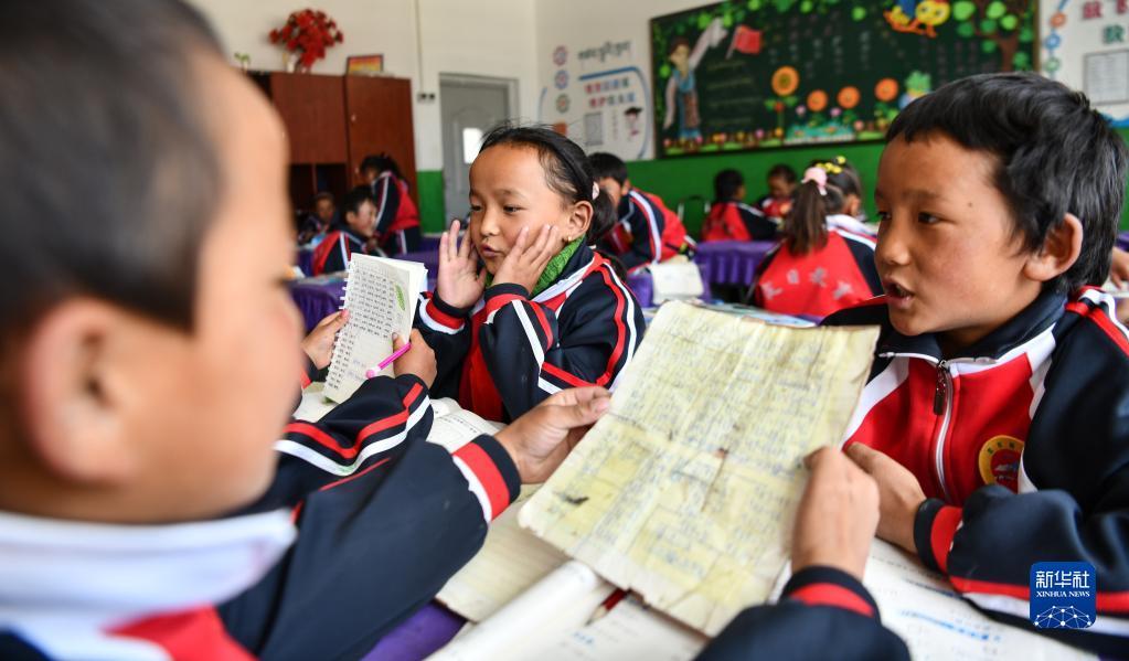 扎西宗乡完全小学的学生在背乘法口诀(6月5日摄)。新华社记者 晋美多吉 摄