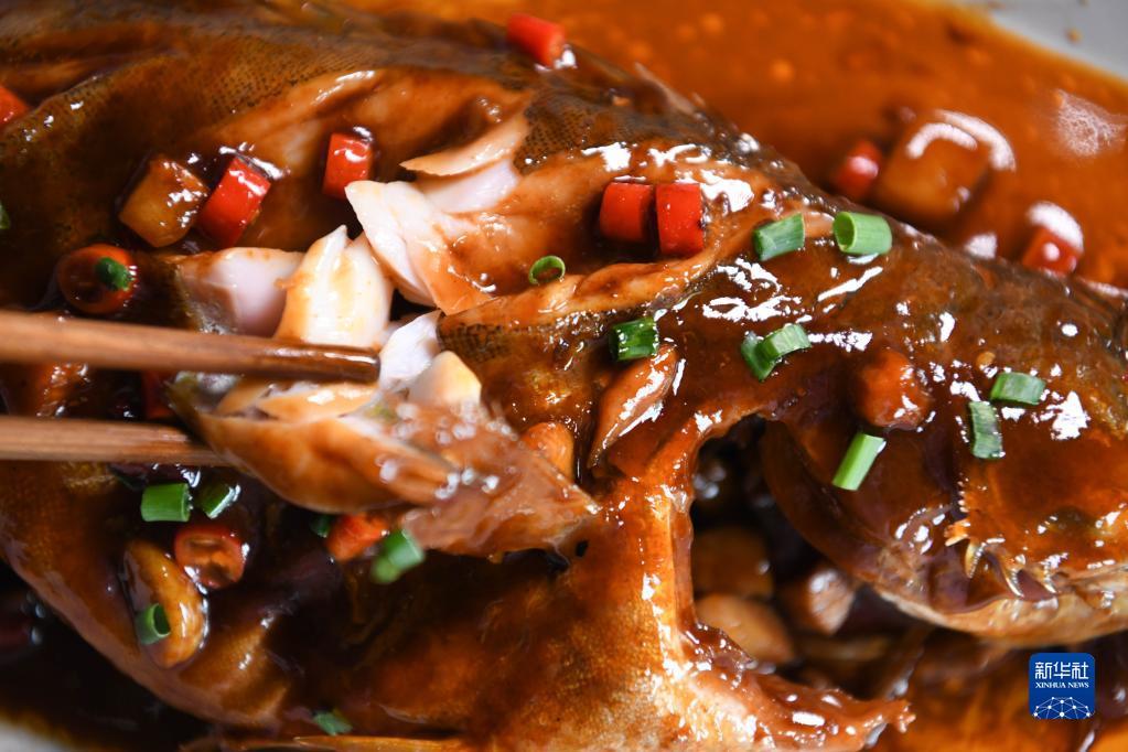 这是6月1日在安徽省黄山市一家百年徽菜老店里拍摄的臭鳜鱼。
