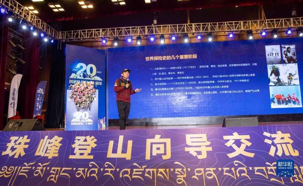 当日,以“致敬热爱 圆梦巅峰”为主题的珠峰登山向导交流大会暨川藏高山向导协作队成立20周年庆典在拉萨举行。