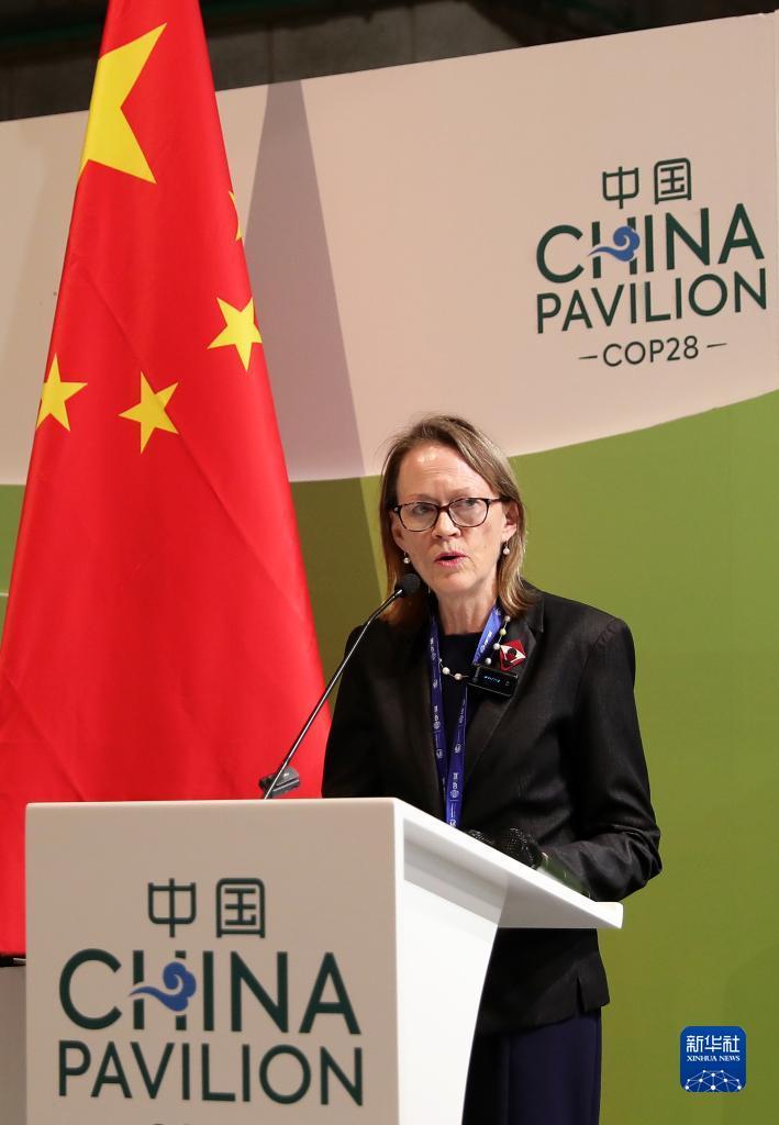 12月9日,在联合国气候变化迪拜大会期间,国际能源署副署长玛丽·沃利克在以“携手共铸全球能源转型之未来”为主题的中国角边会活动上发言。