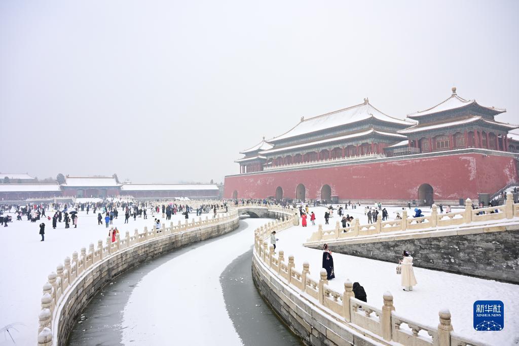 当日,北京再次迎来大雪天气,不少游客前往故宫游玩赏雪。