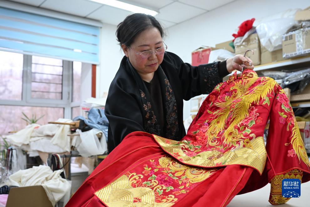河北省非物质文化遗产项目“王氏宫绣”代表性传承人王国荣潜心研究刺绣30余年。近年来,王国荣在家乡河北省隆化县创立工作室,为高端定制服饰进行代加工,非遗技艺得到传承的同时,还带动当地40多名绣娘发展“指尖经济”,工坊年收益达120余万元。